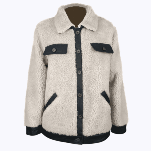 Fit cutting with flock contrast stitches.